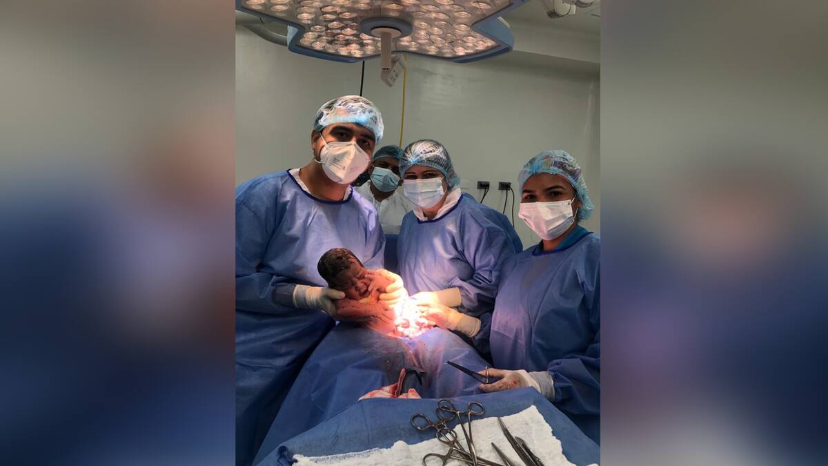 El recién nacido pesó 3.855 gramos y la cirugía de cesárea fue atendida por los ginecólogos Duban Arrieta y Claudia Forero, en la nueva sala de partos de la entidad.