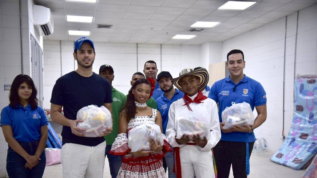 Los soberanos del Carnaval de los niños 2023, Tahiana Rentería De Ávila y Diego Chelia Acosta hicieron presencia en el estadio Edgar Rentería, uno de los centros de acopio dispuestos para recibir las ayudas.