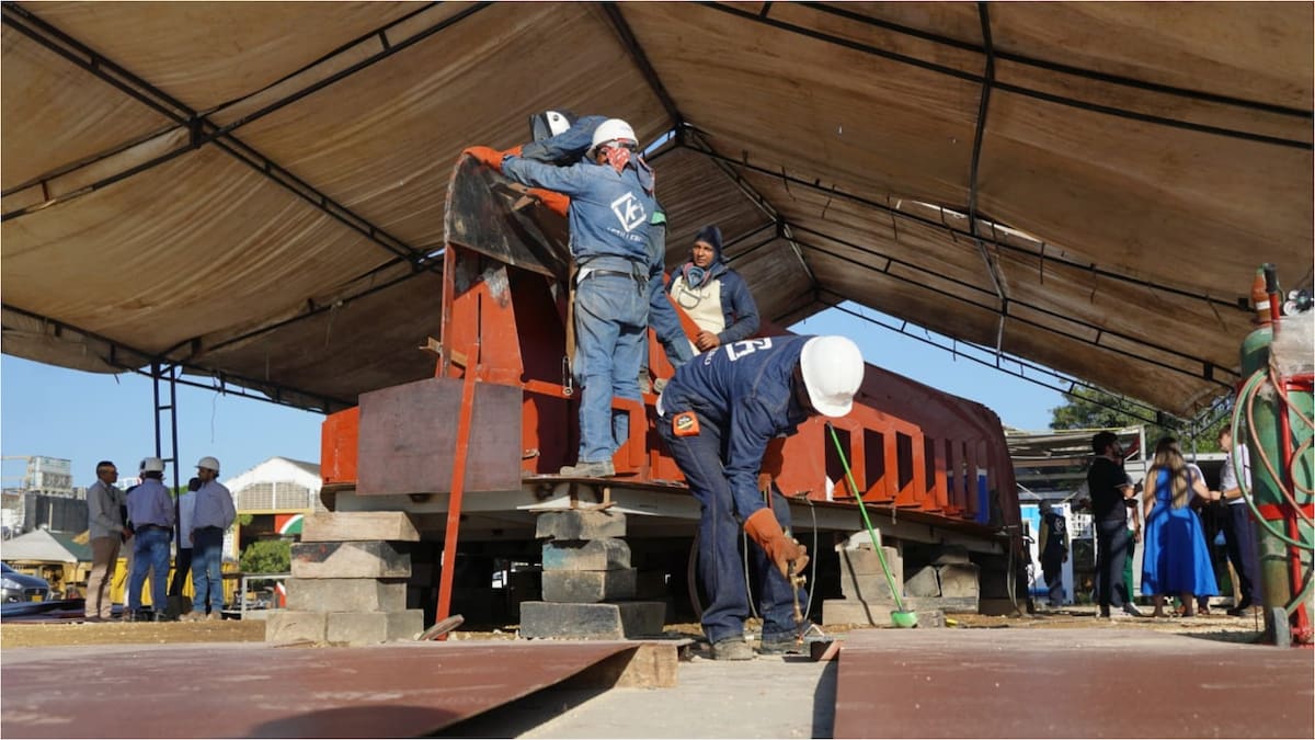 El alcalde Jaime Pumarejo Heins inspeccionó este jueves, en Cartagena, el avance de la construcción de la embarcación de Río-Bus cuyo diseño cuenta con la aprobación del Ministerio de Transporte, y que se empleará para movilizar hasta 60 personas por trayecto.