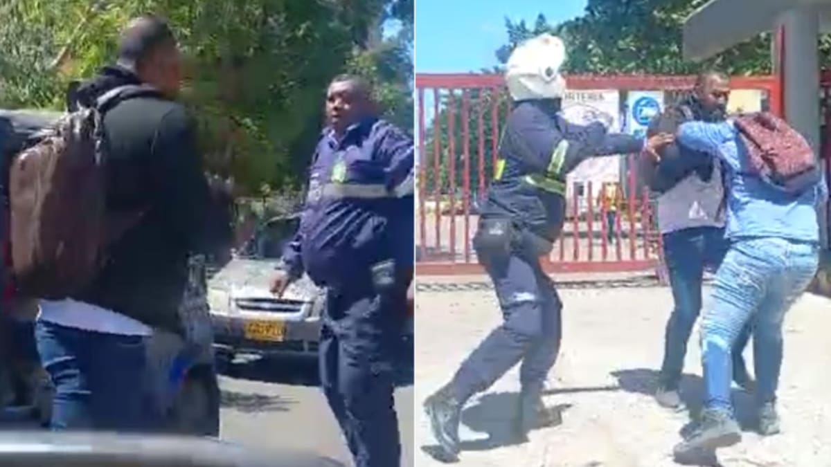 Cuando se pensaba que la pelea había terminado, un civil que llegó en una motocicleta, quien al parecer es familiar de uno de los agentes, se bajó de su vehículo y se dirigió a donde el hombre, quien estaba recogiendo algo del piso, y empezó a pegarle en su rostro.