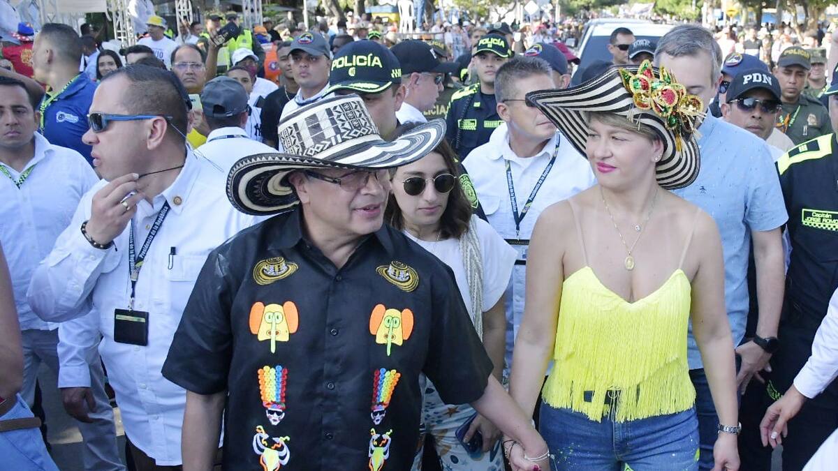 Petro llegó al desfile, frente de la iglesia de San Felipe, luciendo una camisa de color negro con figuras alusivas al Carnaval como la marimonda, un congo grande y un torito de Carnaval. Caminó aproximadamente 500 metros y se subió nuevamente a la camioneta de la avanzada presidencial junto con su esquema de seguridad.