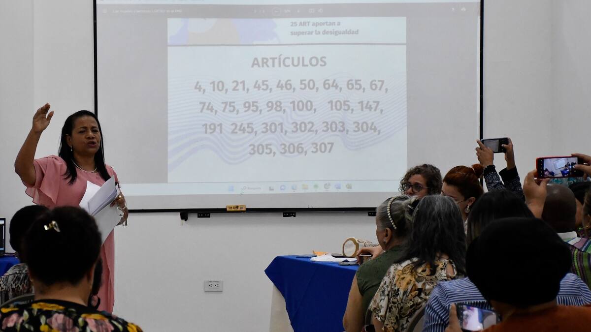 'Seguiremos alzando nuestra voz, seguiremos exigiendo que el enfoque de género sea incluido en ese documento, porque aún a pesar de las mesas de trabajo que se han hecho desde los territorios vemos muchas falencias', precisó.