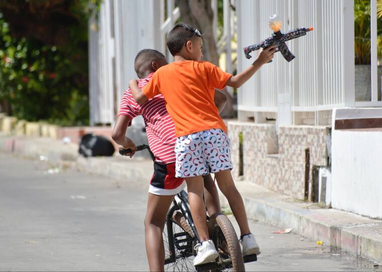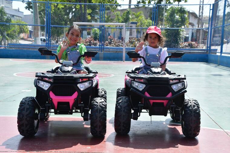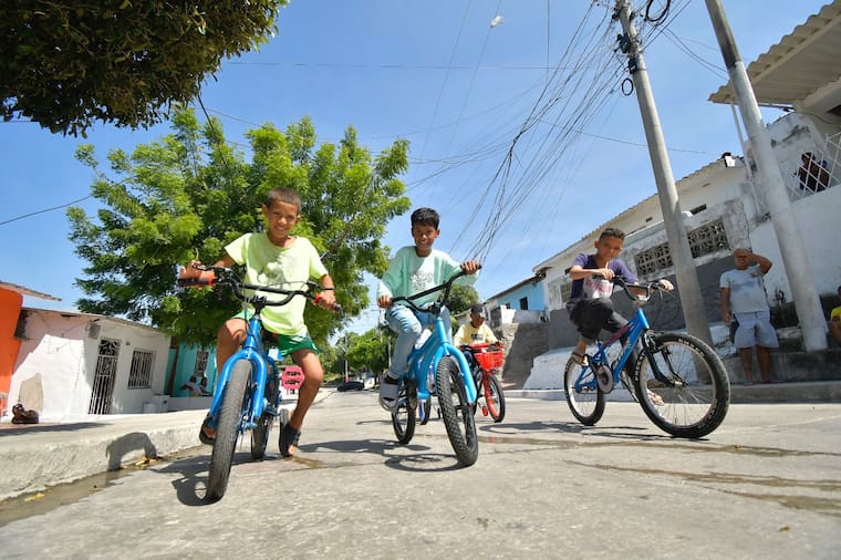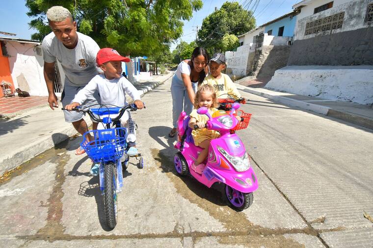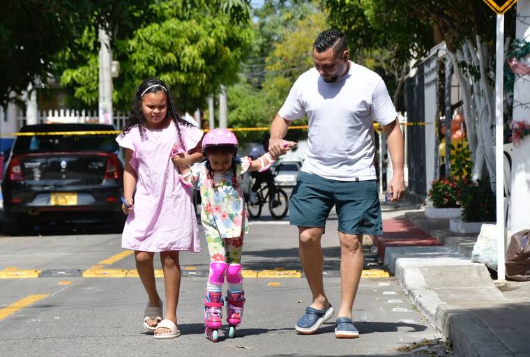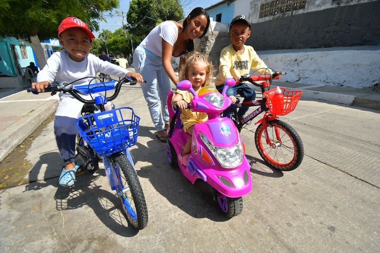Los niños salieron a las calles para gozar en familia en medio de un ambiente festivo.
