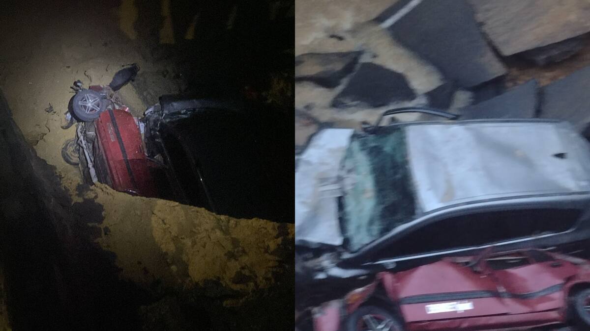 Debido al colapso tres vehículos resultaron vinculados en el accidente: 2 carros y 1 moto.