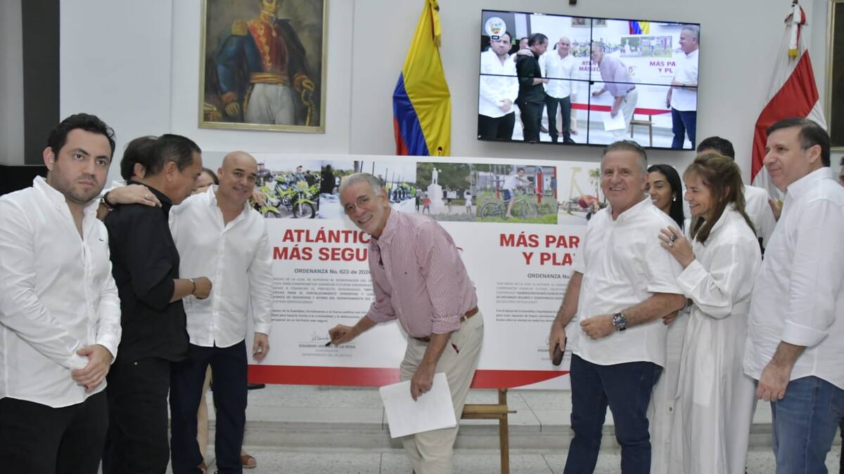 En el marco del cierre del periodo de sesiones extraordinarias de la Asamblea, el gobernador Eduardo Verano firmó la sanción de la ordenanza para fortalecer la seguridad en 18 municipios que no hacen parte del área metropolitana y la iniciativa da vía libre al proyecto ‘Más Parques y Plazas’.