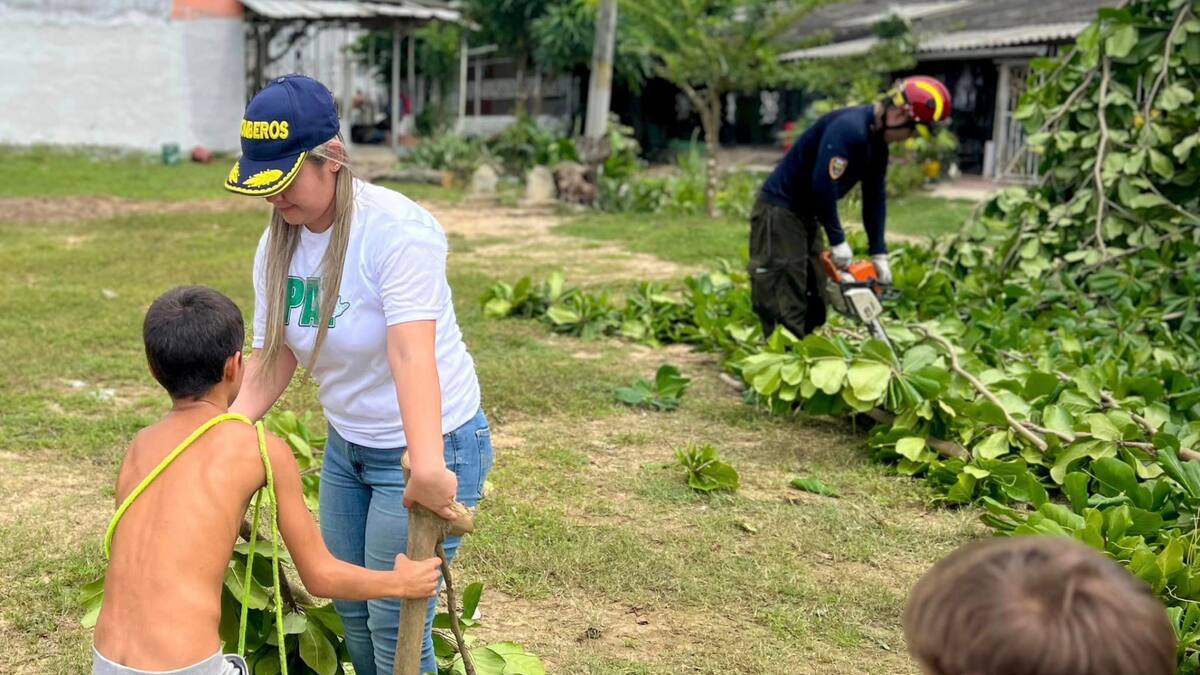 Además, se llevó a cabo una jornada de limpieza que incluyó la tala de árboles y desmonte de áreas en mal estado, con el fin de despejar y revitalizar estos espacios, evitando que se conviertan en focos de inseguridad.