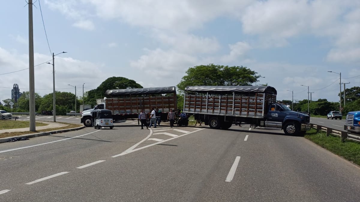 En la mañana de este jueves un grupo de conductores de buses interdepartamentales bloqueó la vía Barranquilla-Ciénaga, a la altura del corregimiento de Palermo.