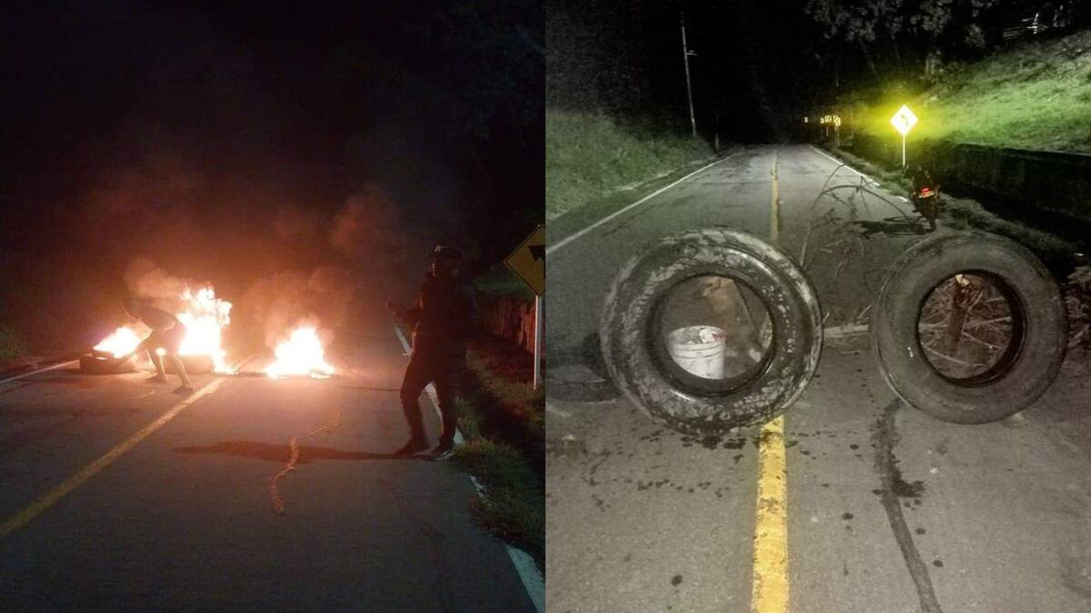 Desde horas de la madrugada las vías en mención fueron bloqueadas con la quema de llantas y con troncos de árboles.