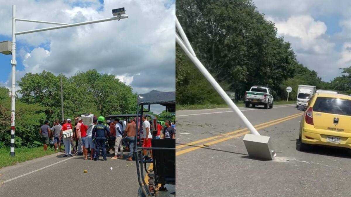 Ante el inconformismo por la implementación de las nuevas cámaras de fotomultas que han sido instaladas en algunos municipios del Atlántico, un grupo de conductores de motocarros realizaron una jornada de protesta en la que provocaron la caída de uno de los equipos ubicados en la vía entre Sabanagrande y Palmar de Varela.