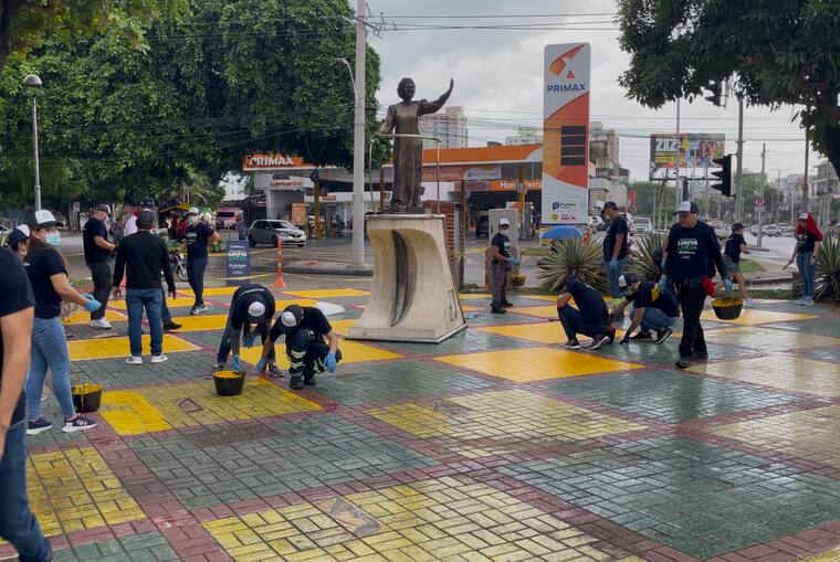Los voluntarios junto con las autoridades realizaron tareas como pintar el piso de la plazoleta y barrido de residuos en el sector para refrescar el entorno.