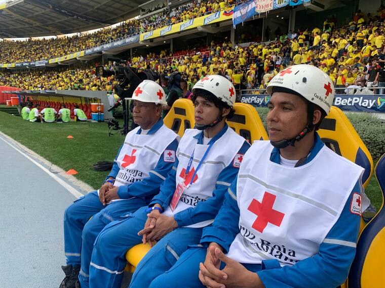 En la misma línea, la Cruz Roja Colombiana Seccional Atlántico hace presencia en el partido con 80 voluntarios de las diferentes agrupaciones: socorrismo, juventud y damas grises. También cuenta con dos ambulancias y estamos realizando la atención en el Módulo de Estabilización y Clasificación (MEC).