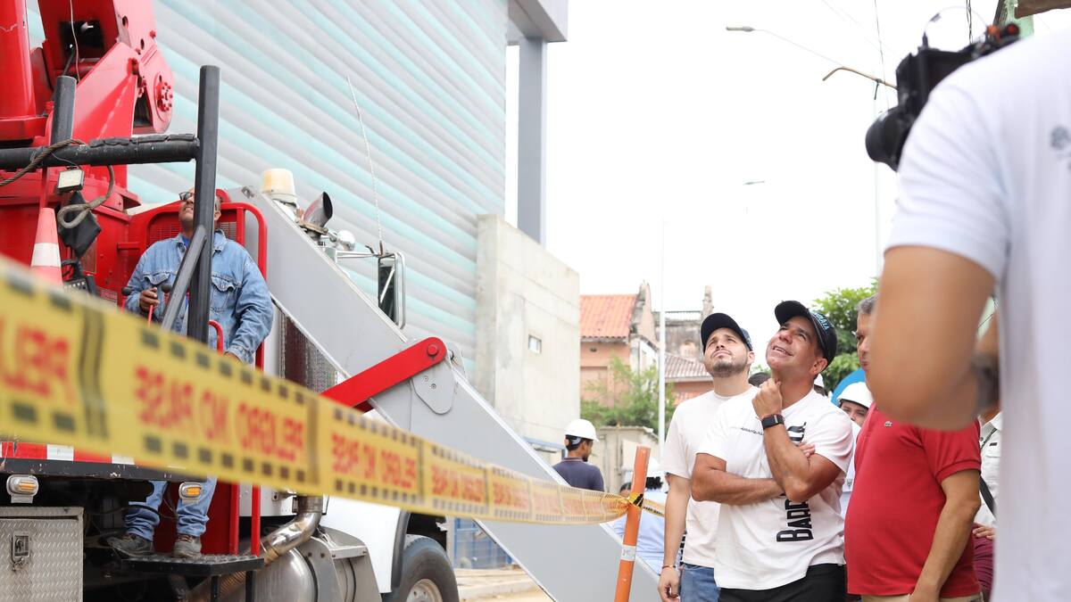 El alcalde del distrito de Barranquilla, Alejandro Char Chaljub, realizó una visita de inspección a la obra del nuevo Hospital de Barranquilla para supervisar los trabajos que se ejecutan en 17 frentes activos, así como vigilar el izaje de seis manejadoras de aire acondicionado, que representan una capacidad de 300 toneladas de aire para esta edificación.