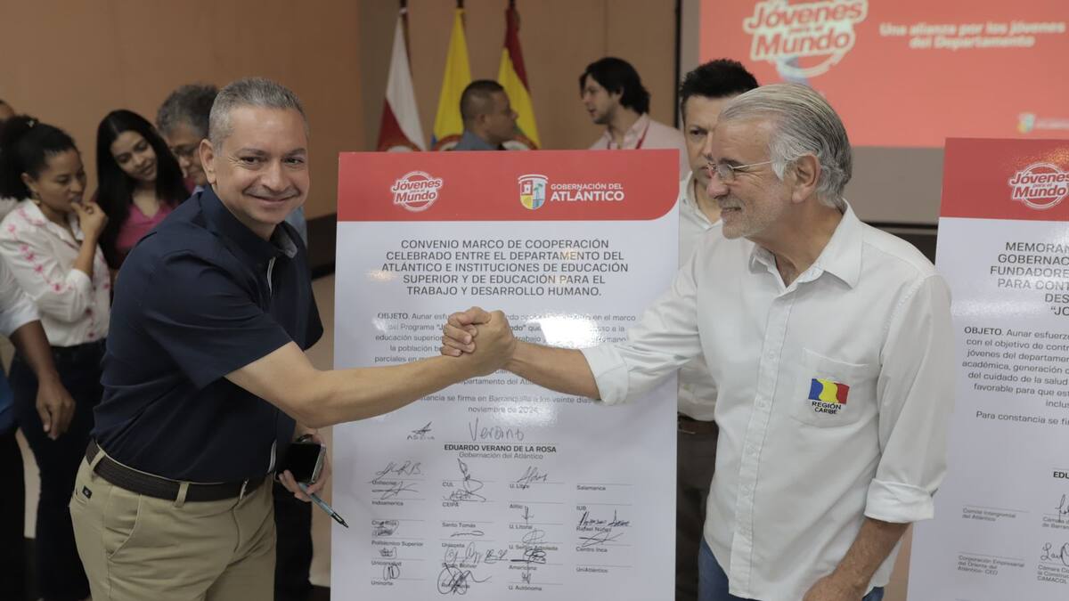 Eduardo Verano, gobernador del Atlántico, firmó un convenio de colaboración con 22 instituciones de educación superior y para el trabajo, como parte del programa ‘Jóvenes Para el Mundo’, programa que busca cerrar las brechas sociales y facilitar el acceso a la educación en el departamento.