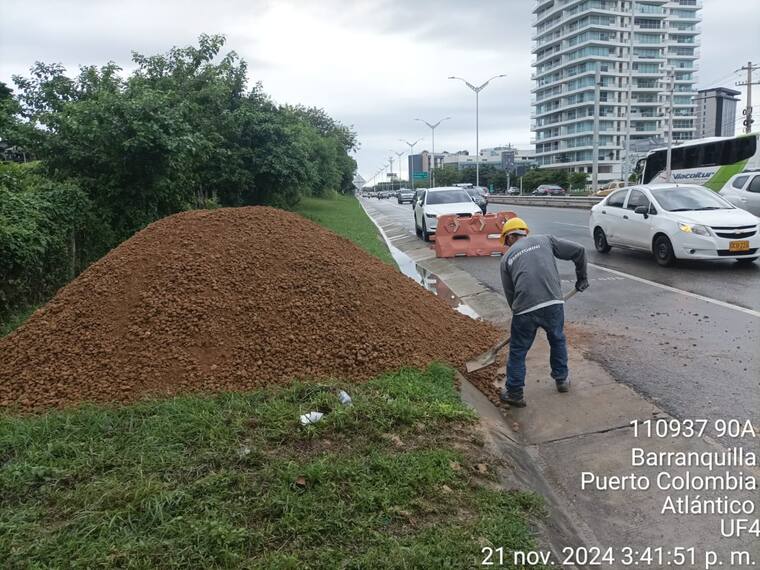 Dicha vía se ha estado socavando debido a las fuertes lluvias que se han presentado en el departamento del Atlántico en los últimos meses.