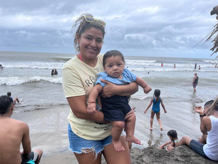 En la playa de Sabanilla estuvo la también barranquillera Cintia Cámera, quien trajo Eithan Jiménez, el bebé de su amiga, a ver por primera vez el mar.