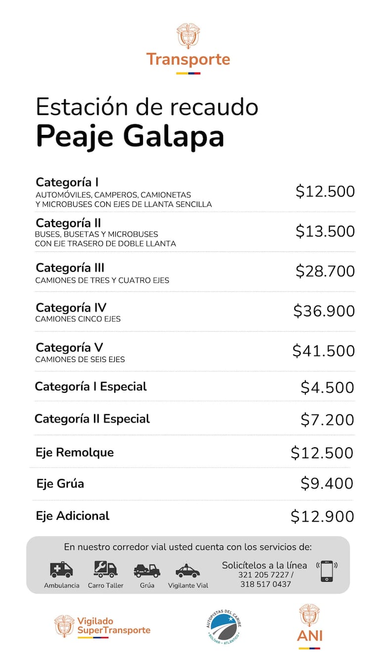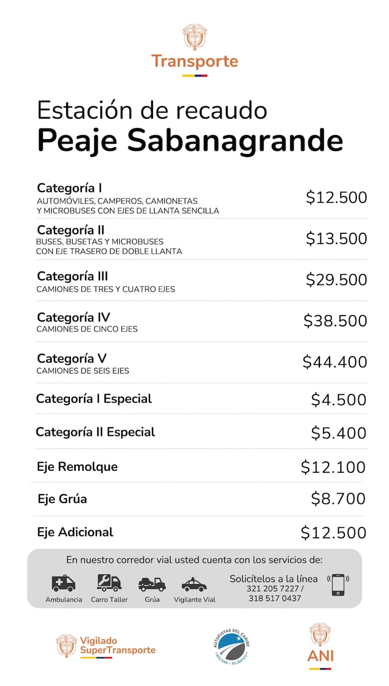 La concesión Autopistas del Caribe informó que el ajuste en la tarifa de los peajes se realizó el pasado 10 de enero, de acuerdo con el IPC, según Resolución 20243040065055. Esta actualización se adelantó en los peajes de Sabanagrande y Galapa.