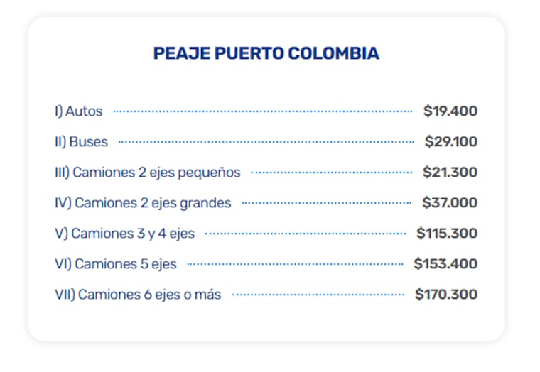 De acuerdo con la concesión Ruta Costera, que opera la Vía al Mar y la Circunvalar de la Prosperidad, las tarifas fueron establecidas por el Ministerio de Transporte de acuerdo con las resoluciones y decretos vigentes.