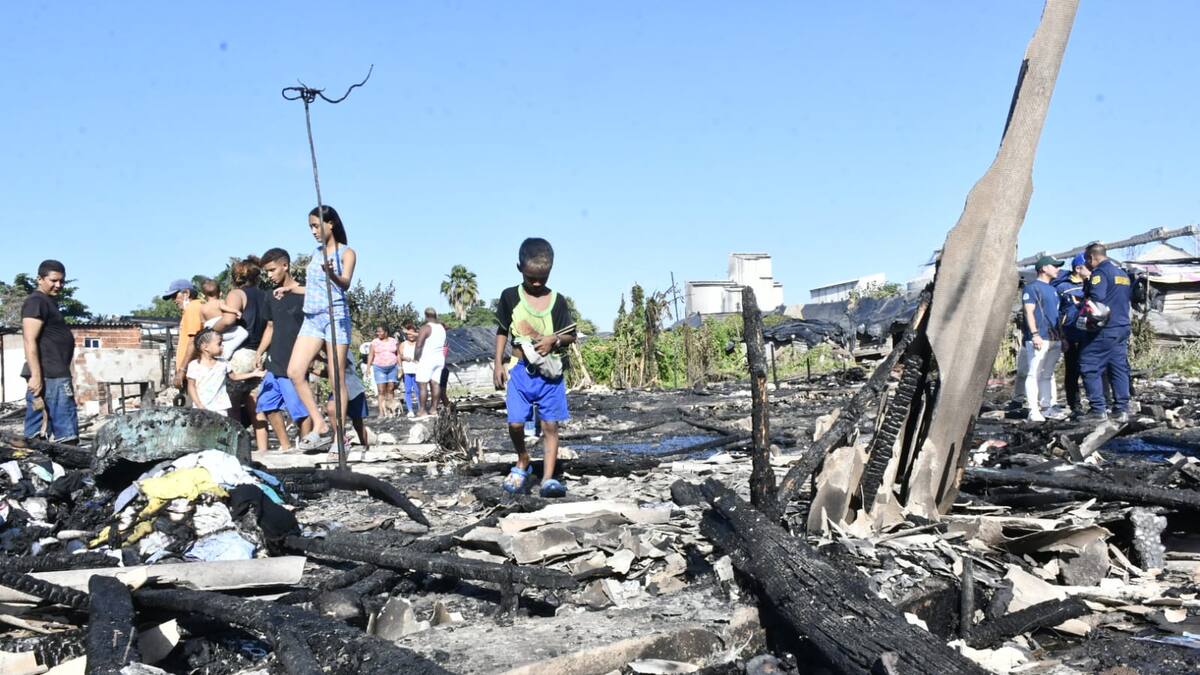 Luego de controlar el fuego, se observa que las casas incendiadas quedaron totalmente consumidas.