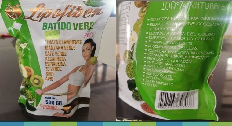 Se trata de la mezcla preparada ‘Lipofiber Batido Verde Mix’, cuyo registro sanitario (RSA-01196-2022 ) utilizado para comercializar es falso.