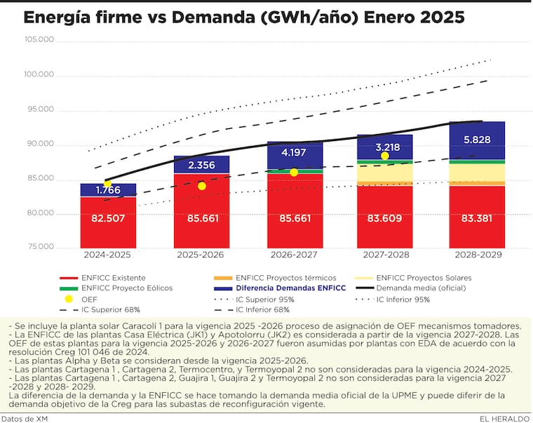 Según un informe reciente de XM –administrador del mercado eléctrico en Colombia–, se ha identificado que hasta el año 2029 se irá incrementando el déficit de energía debido a las diferencias notables entre las Obligaciones de Energía Firme (OEF) y la demanda de los usuarios.