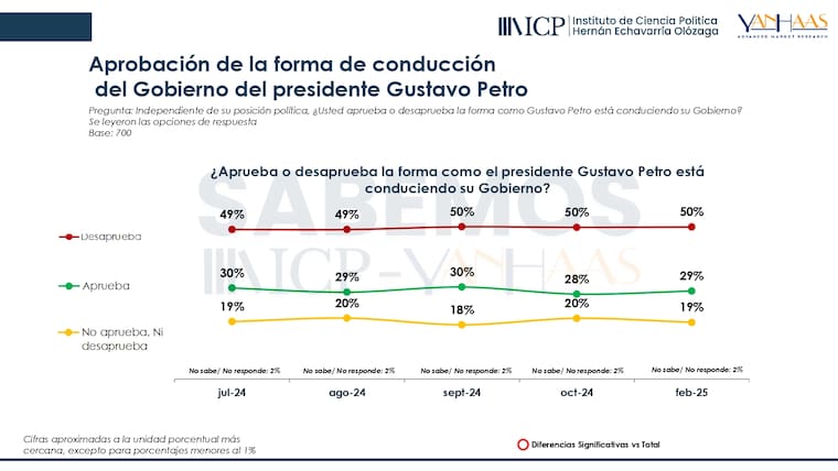En la misma medición, el jefe de Estado obtuvo una desaprobación del 24 %, lo que corresponde a un incremento de 14 puntos porcentuales.