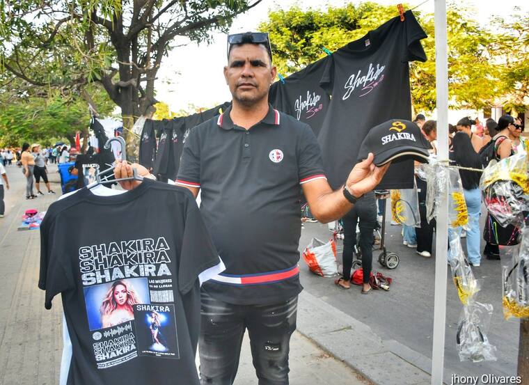 Javier Vera, de 45 años y oriundo de Maracaibo, explicó que han venido aprovechando el furor de los fanáticos por Shakira: “Tengo aproximadamente un mes fabricando lo que son las gorras, las camisetas, para venderlas en la gira de Shakira en Colombia”.
