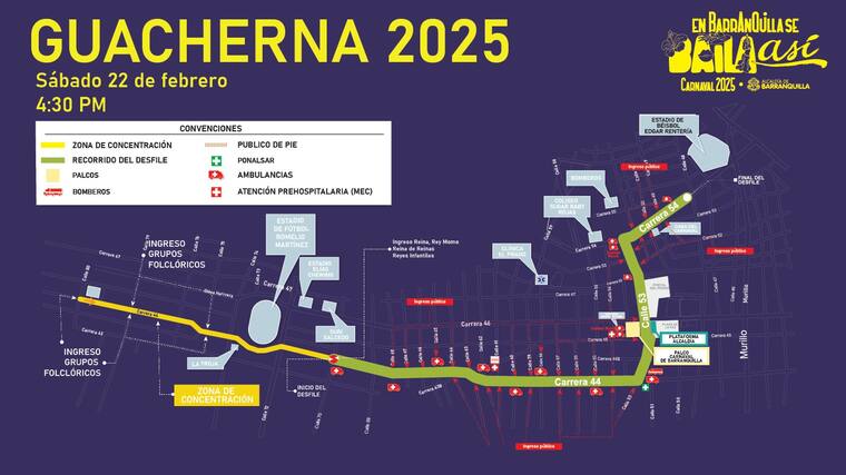 El distrito de Barranquilla, en el desarrollo del Plan de Contingencia en Salud del Carnaval 2025, habilitó 12 puntos de atención para dar respuesta a cualquier eventualidad o emergencia que se presente durante el tradicional desfile de la Guacherna.