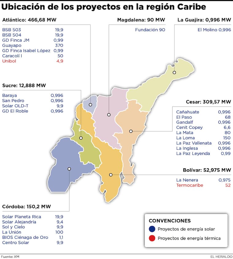 Para la vigencia 2027-2028 se asignaron 4.441 megavatios solares mediante el cargo por confiabilidad, de los cuales el 50,27 % provienen de la Costa. Además, el 54 % de los proyectos de generación en Colombia se concentran en el Caribe.