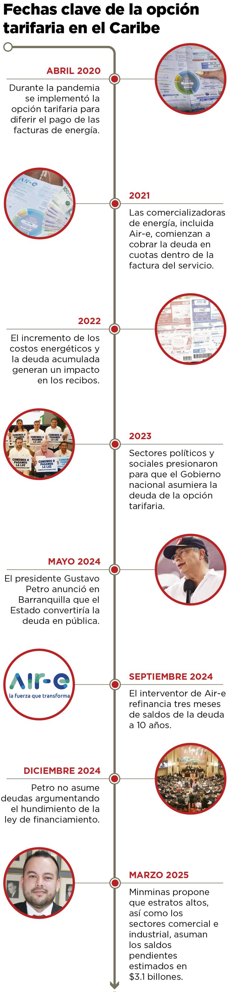 En los últimos días, el debate en torno al futuro de la deuda de los saldos de la opción tarifaria, uno de los componentes de las tarifas de energía y que ha impactado el costo del servicio, en especial en la región Caribe, tiene un nuevo capítulo.