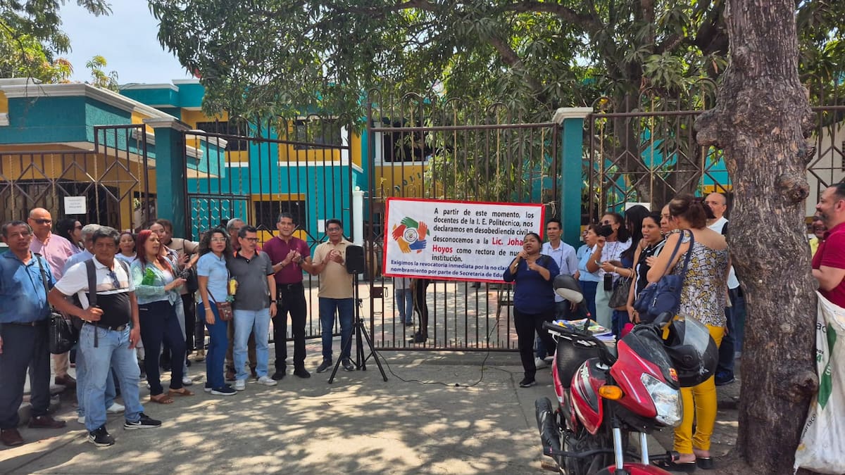 Más de dos semanas en declaratoria de rebeldía van a completar los alrededor de 120 profesores que componen la planta docente del Instituto Educativo Politécnico de Soledad, quienes se niegan a reconocer la autoridad de la rectora encargada Johanna Hoyos, de quien dicen los educadores no cumple con los requisitos y ha mantenido una mala relación con ellos.