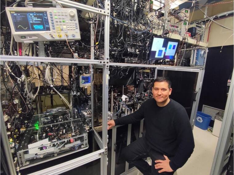“Con esos átomos ahí parados, podemos obtener información de la frecuencia de oscilación de los electrones dentro del átomo, entre los estados cuánticos, y eso es lo que define el tiempo, porque por ejemplo definimos un segundo como el número de veces de una transición atómica particular, cuando un electrón se mueve entre dos orbitales, en ese tiempo se da un segundo.