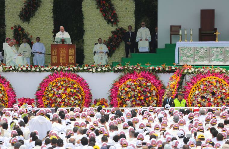“En Bogotá y en Colombia peregrina una inmensa comunidad que está llamada a convertirse en una red vigorosa que congregue a todos en la unidad, tanto en la defensa como en el cuidado de la vida humana, particularmente con el más frágil y vulnerable. Muchas comunidades en el país pueden llegar a ser grupos vivos, amables y fraternos que escuchan y acogen la palabra de Dios”, mencionó el papa Francisco durante la homilia.