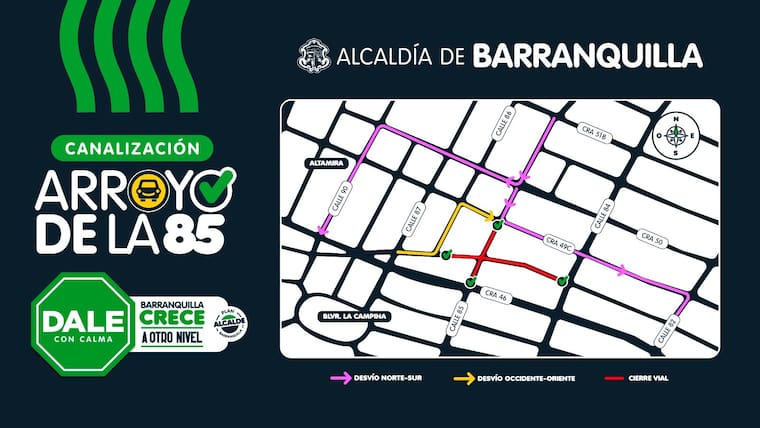 En el sector habrá cierres totales en la calle 85 entre carreras 49C y 46 (sin incluir las carreras) y en la carrera 47 entre calles 86 y 84 (sin incluir las calles).