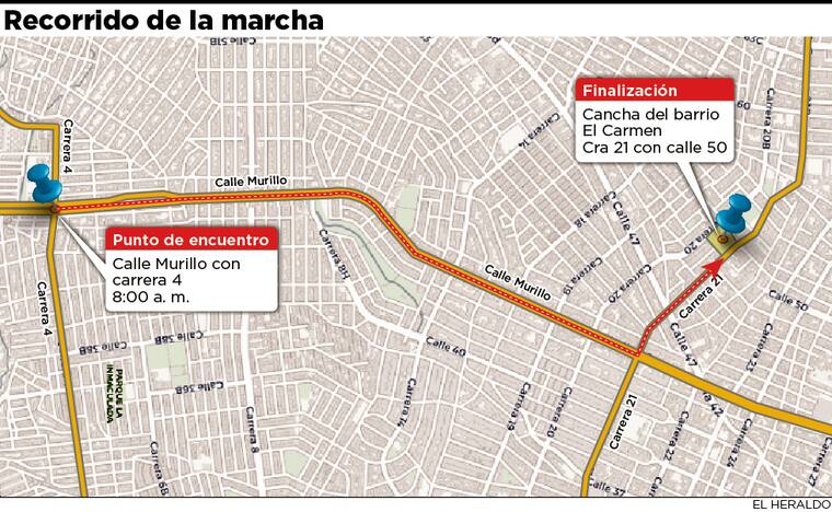 En Barranquilla, la marcha tendrá como punto de encuentro en la avenida Murillo con la carrera 4 y finalizará en la cancha del barrio El Carmen, en cercanías al colegio Sofía Camargo de Lleras.