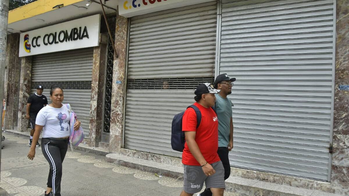 De esta manera, la mayoría de locales del Paseo Bolívar, Shopping Center, Centro Comercial Colombia se encuentran cerrados. En la zona permanecen vendedores ambulantes y algunos comerciantes informales.