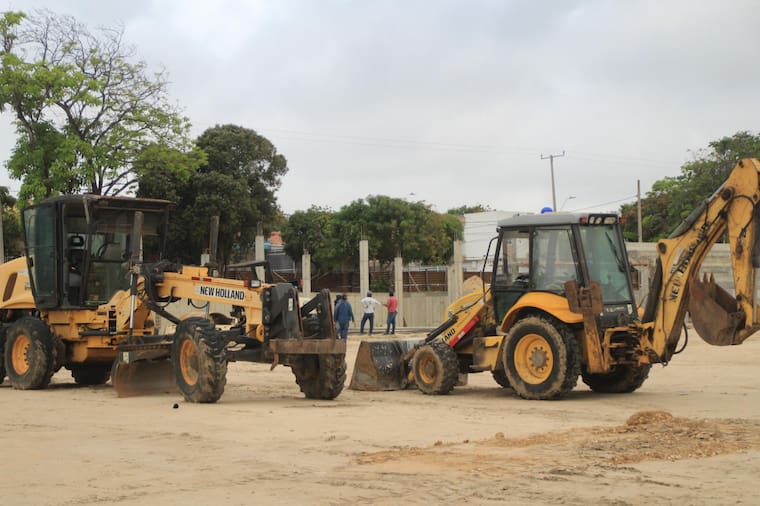 Mientras tanto, en las canchas de fútbol se trabaja en la construcción de las graderías, cerramientos en mallas electrosoldadas y el relleno de arena.