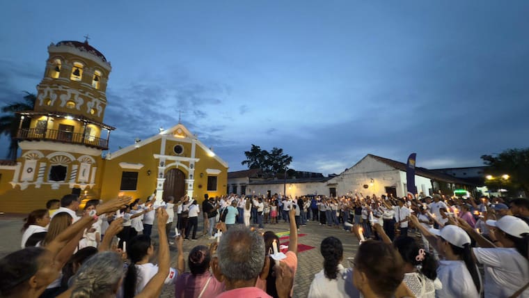 Desde la Plaza Santa Bárbara de Mompox, en Bolívar, los habitantes unieron sus manos en la cercanía de la iglesia para recordar que los colores de Colombia nos representan a todos.