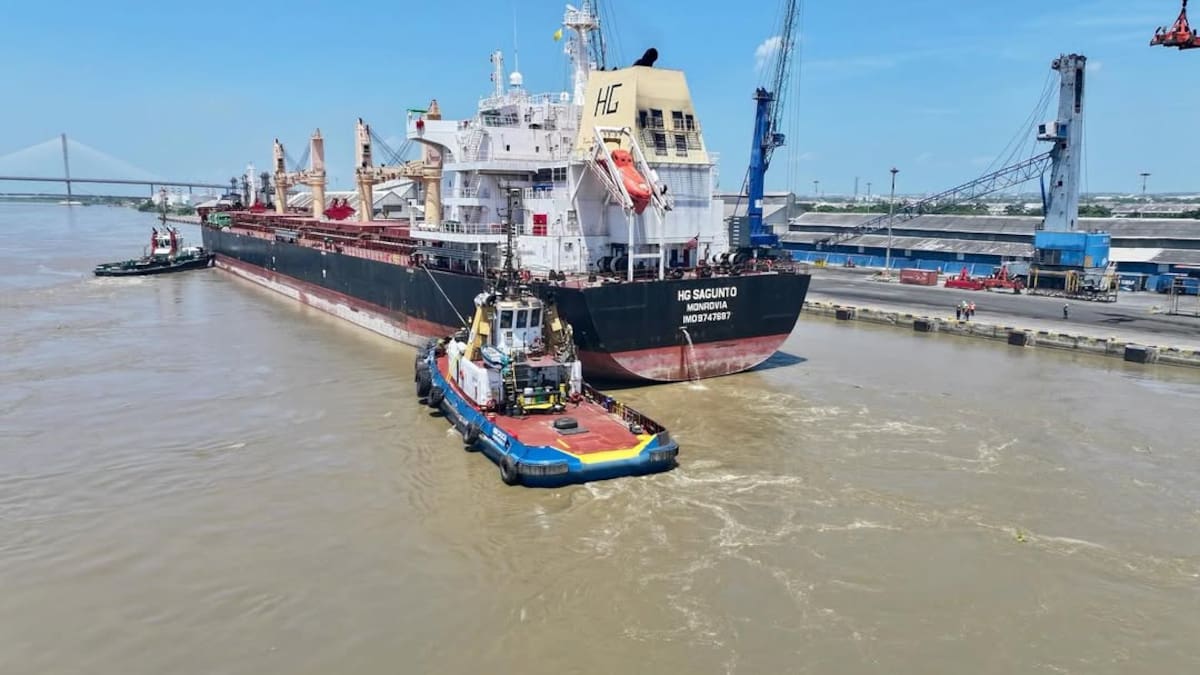 “Recibimos la motonave HG Sagunto, proveniente de China, con un cargamento de 35.777 toneladas de acero y productos químicos, convirtiéndose en la embarcación con el mayor volumen registrado en este segmento en la zona portuaria de Barranquilla”, publicó en sus redes sociales el terminal portuario, luego de reservarse la noticia hasta contrastar en sus registros la cifra.