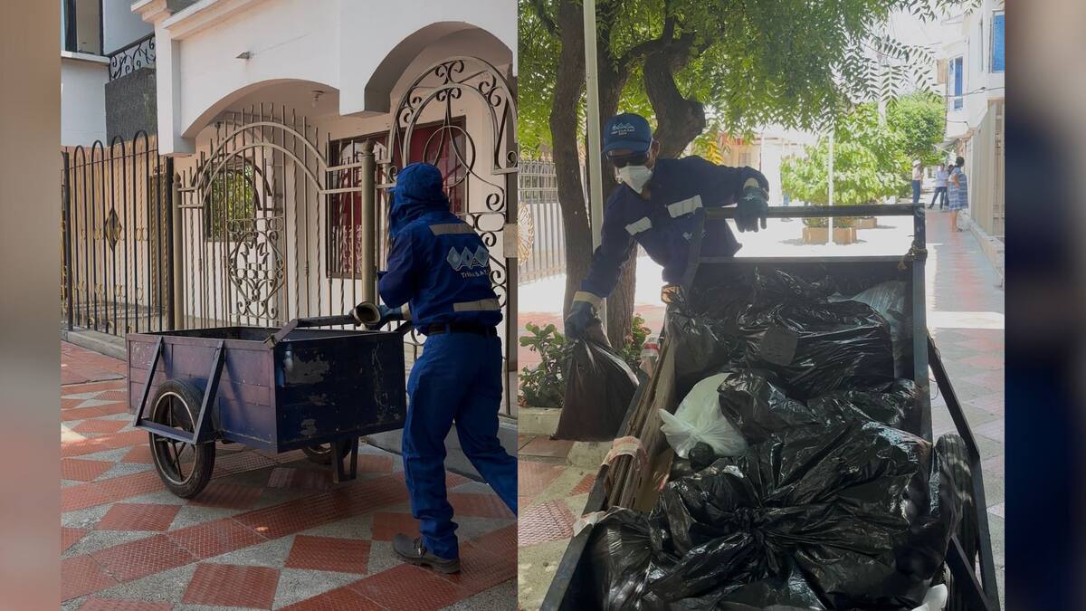 Estos operarios extraen los residuos del andén de los usuarios, y los traslada hasta el punto donde lo espera el carro compactador que transporta la basura hasta el relleno sanitario Parque Ambiental Los Pocitos.
