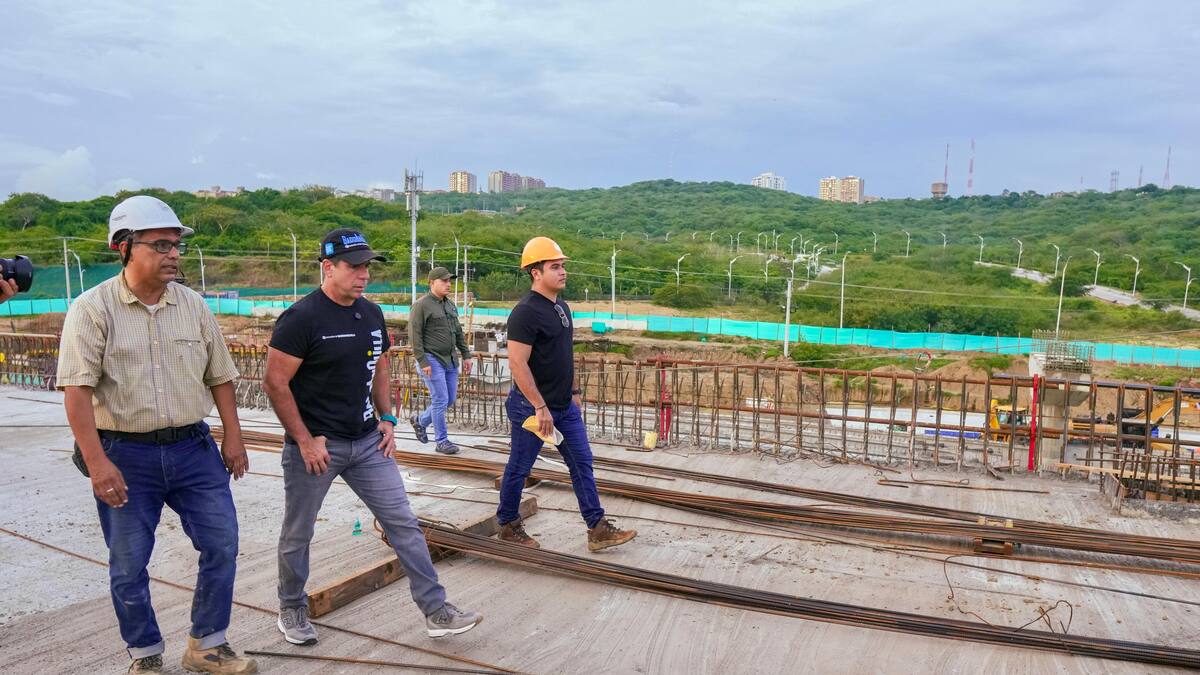 Al ver el avance de la obra, el alcalde aseguró que cada vez está más cerca una solución a la movilidad que aqueja a los ciudadanos en la avenida Circunvalar. “Estamos a nada de estrenar el megapuente de la Circunvalar, a la altura de Alameda del Río. Ya terminamos de fundir el tablero del primer puente, en sentido norte-sur, que va en 82%”.