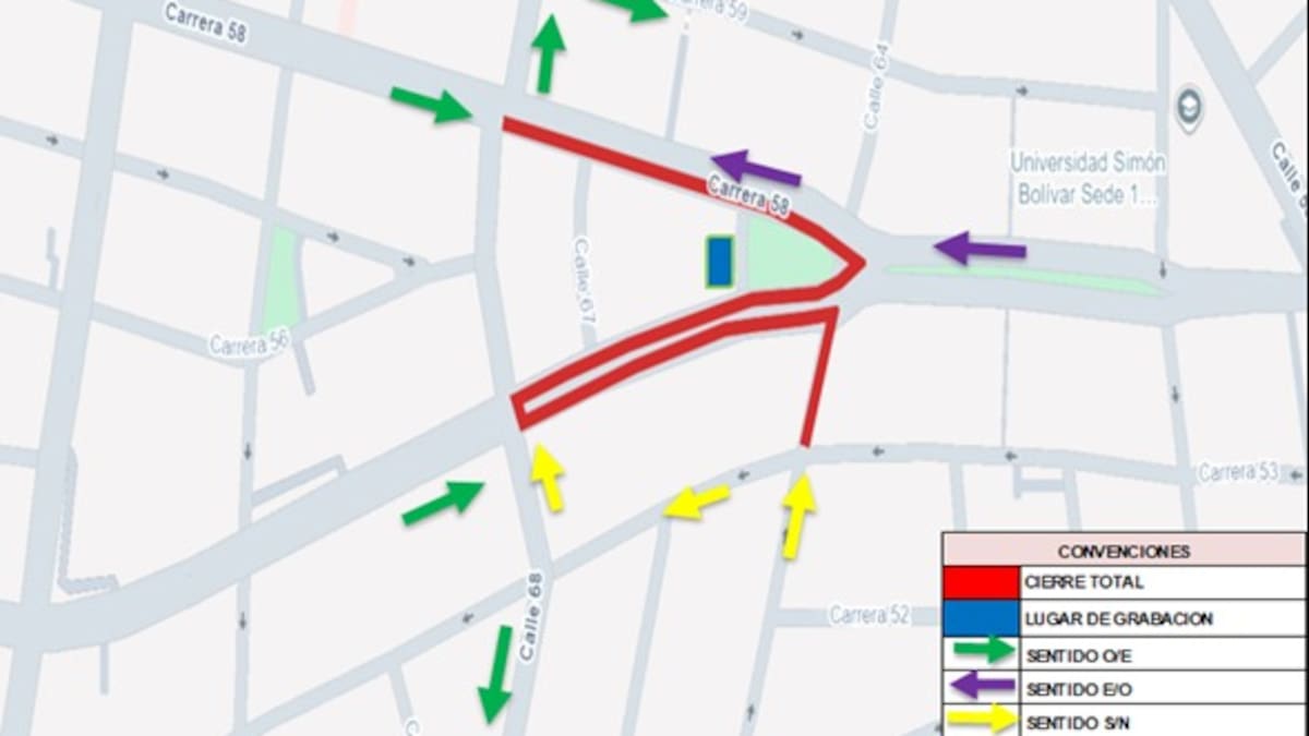 A su vez, los usuarios viales que transitan sentido este-oeste, deben tomar la carrera 58 desde la calle 64.