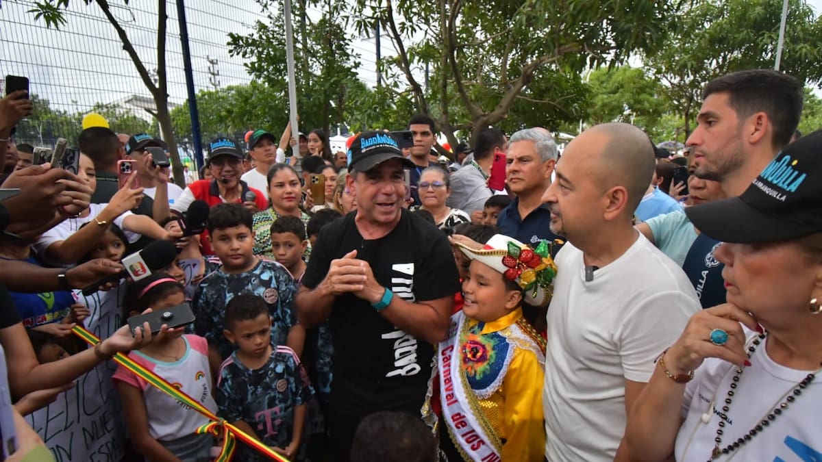 Durante la entrega del parque, el alcalde Char también resaltó la presencia del rey Momo Infantil del Carnaval 2025: “nuestro rey está aquí feliz y bailando, porque sabe que los niños barranquilleros va a utilizar este parque para practicar sus danzas y congregarse en torno a la alegría del Carnaval”.