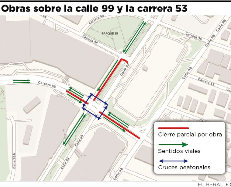 Además, se desarrollarán otras obras en el tramo comprendido por la calzada sur de la carrera 53, entre calles 98 y 100.
