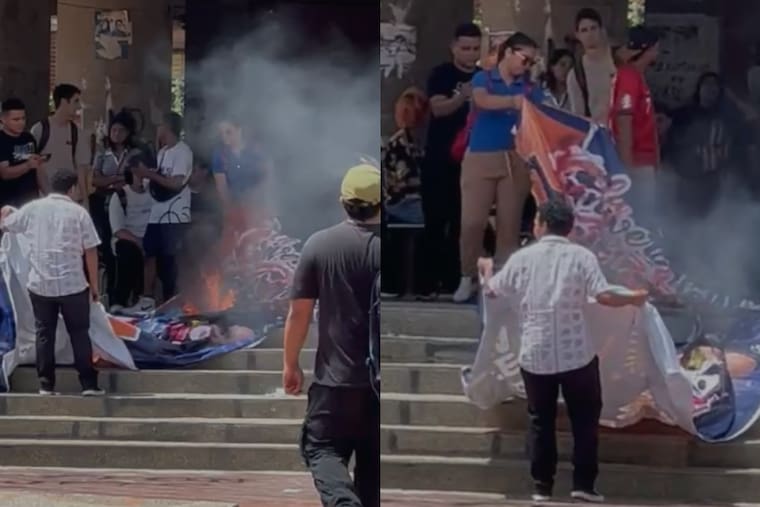 De forma previa, en la plazoleta del Bloque D, donde un grupo de presuntos estudiantes prendió fuego a un pendón publicitario de Leyton Barrios, uno de los candidatos que se encuentra en la puja por la rectoría de la alma mater.