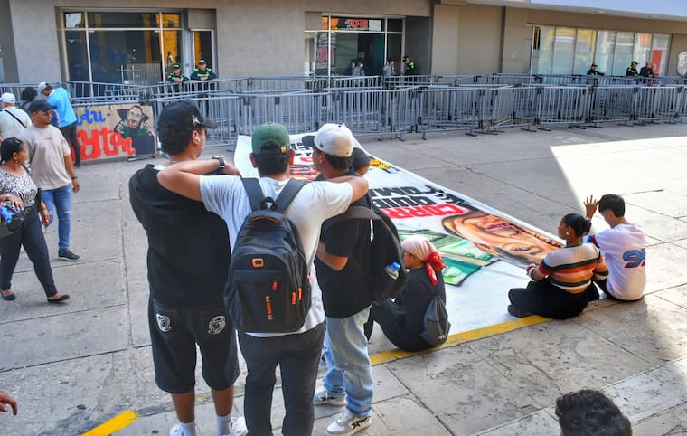 Al tiempo, a las afueras del edificio de la Gobernación, un grupo de estudiantes inician una concentración pacífica, para presionar la renuncia del actual rector Leyton Barrios.