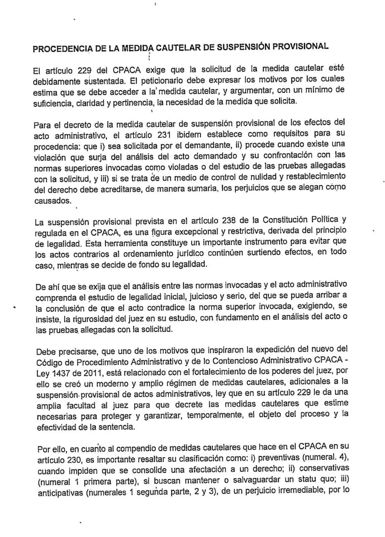 Asimismo, el gobernador Verano solicitó una medida cautelar de urgencia, consistente en la suspensión provisional del acuerdo superior expedido el 27 de octubre de 2025.