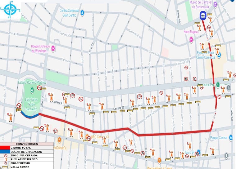 Cabe resaltar que el cierre vial es temporal sobre la carrera 44, entre calles 72 y 74 de 6:00 a.m. a 11:00 p.m. No obstante, el resto del recorrido los cierres iniciarán a partir de las 3:00 p.m. a 11:00 p.m.