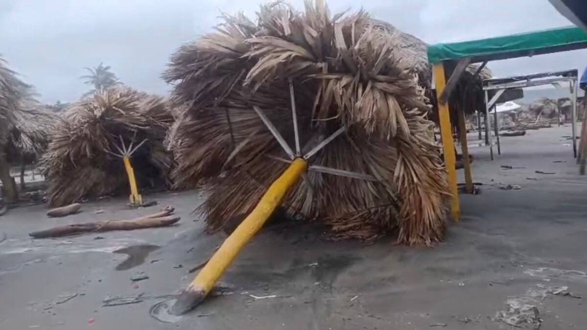 Las fuertes lluvias y el aumento del oleaje en el Caribe colombiano continúan generando afectaciones en el litoral del Atlántico. En Puerto Colombia, varios kioscos ubicados en la zona de playa resultaron derribados por el fuerte embate del mar, situación que ha impactado directamente a los trabajadores del sector turístico y gastronómico.