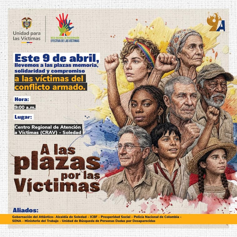 El departamento del Atlántico conmemorará este 9 de abril el Día Nacional de la Memoria y Solidaridad con las Víctimas del Conflicto Armado con un acto central en Soledad, como un espacio de reconocimiento, memoria y construcción de paz.