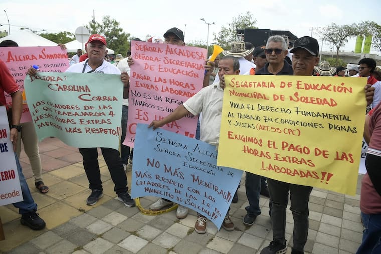 En el marco del paro nacional de 24 horas convocado por la Federación Colombiana de Trabajadores de la Educación (Fecode) para este miércoles 15 de abril, docentes del Atlántico se encuentran en un plantón a las afueras de la Alcaldía de Soledad desde las 8:00 de la mañana, para exigir el cumplimiento de acuerdos laborales y mejoras en el sistema de salud del magisterio.